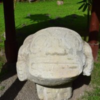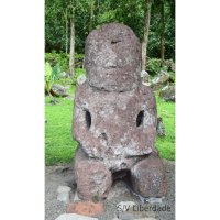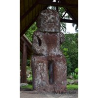 Le site archéologique de Utukua lui, dans la vallée de Punaei, abrite le "tiki souriant" en pleine forêt tropicale, sur un ancien espace de fête Tohua et d’un me’ae (marae). C’est l’un des rares tikis connus en Polynésie avec cette expression. (On y a pas vue de banian) Haut de moins d'un métre, il sort difficilement de la végétation avec les arbres gigantesques autours. Sa tête qui se bidonne avec ses grandes lunettes semble couverte d’un bonnet. Les mains sont placées sur le ventre de chaque côté d’un nombril bien visible. Cool quoi !