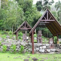 A l'extreme NE de l'île se trouve Puama'u et ses vallées. Nous irons par la mer mais le temps n'était pas au rdv! Heureusement que nous avons visité par la route avant. Il y a l'un des plus beaux site archéologique des Marquises et de la Polynésie française dit on : Meae Lipona. Son charme réside dans sa localisation, près d’un torrent et au pied du seul piton (Toea) de la vallée, l’organisation de ses structures et surtout des plus grandes et des plus belles statues du Territoire. Etudié et restauré à l’occasion du Festival des Arts des Marquises (Matavaa) de 1991, il est le site le plus réputé des Marquises.
