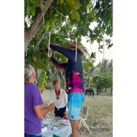 Nous sommes début janvier 2023, en pleine saison cyclonique sur le pacifique sud, mais nous devons avancer, quitter cette longitude de 140° Ouest. Il reste temps de choses à voir. Notre prochaine destination sera les Tuamotu, pas bien loin mais où fruits et légumes sont rares. Un gros appro s'impose donc et nous avons sous la main le superbe marché de Taiohae. Grâce à Evelyne qui tient un petit étal familial, ce sera rapide, efficace et, en une livraison ! Restera le rangement à bord mais là, c'est Véro la pro!