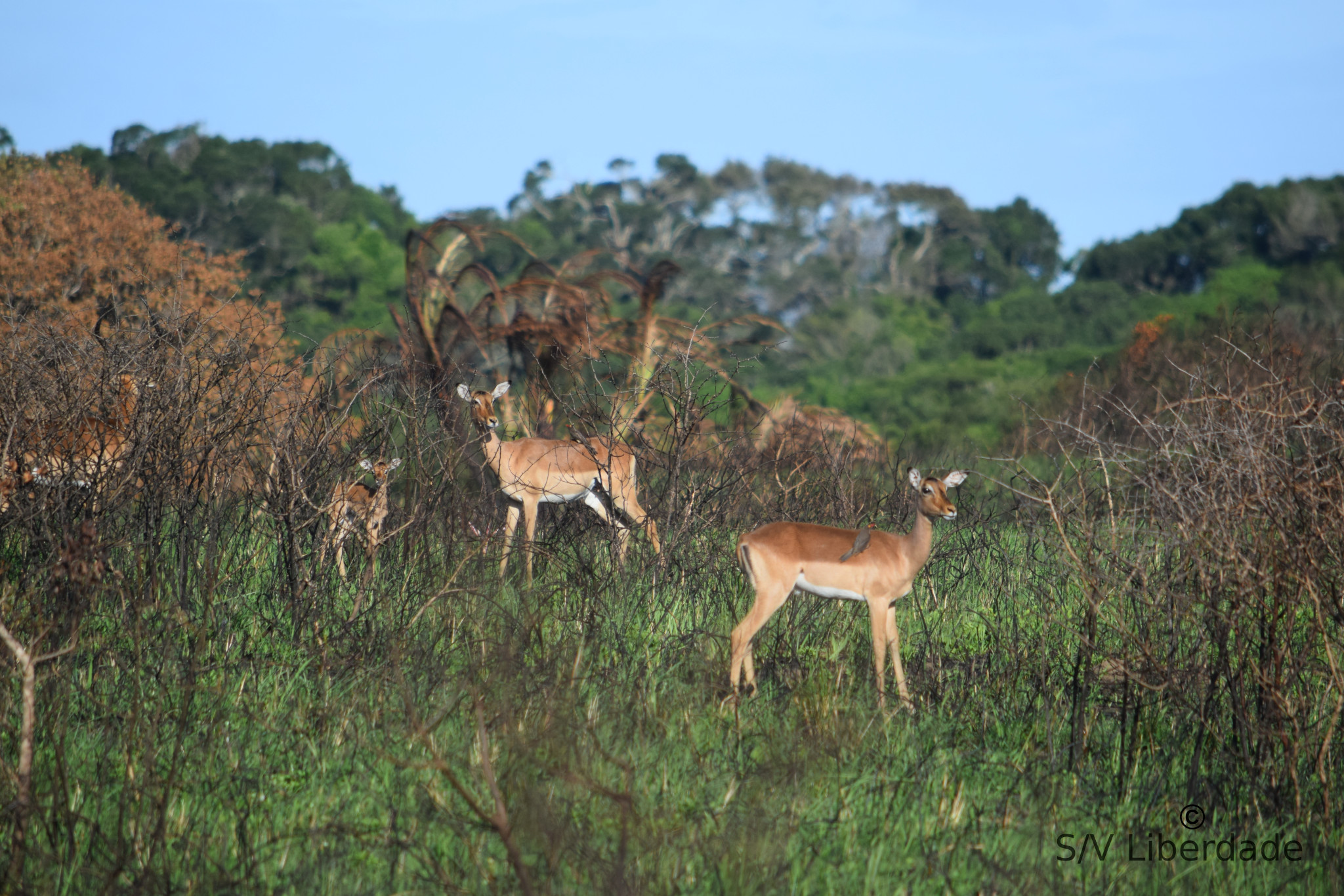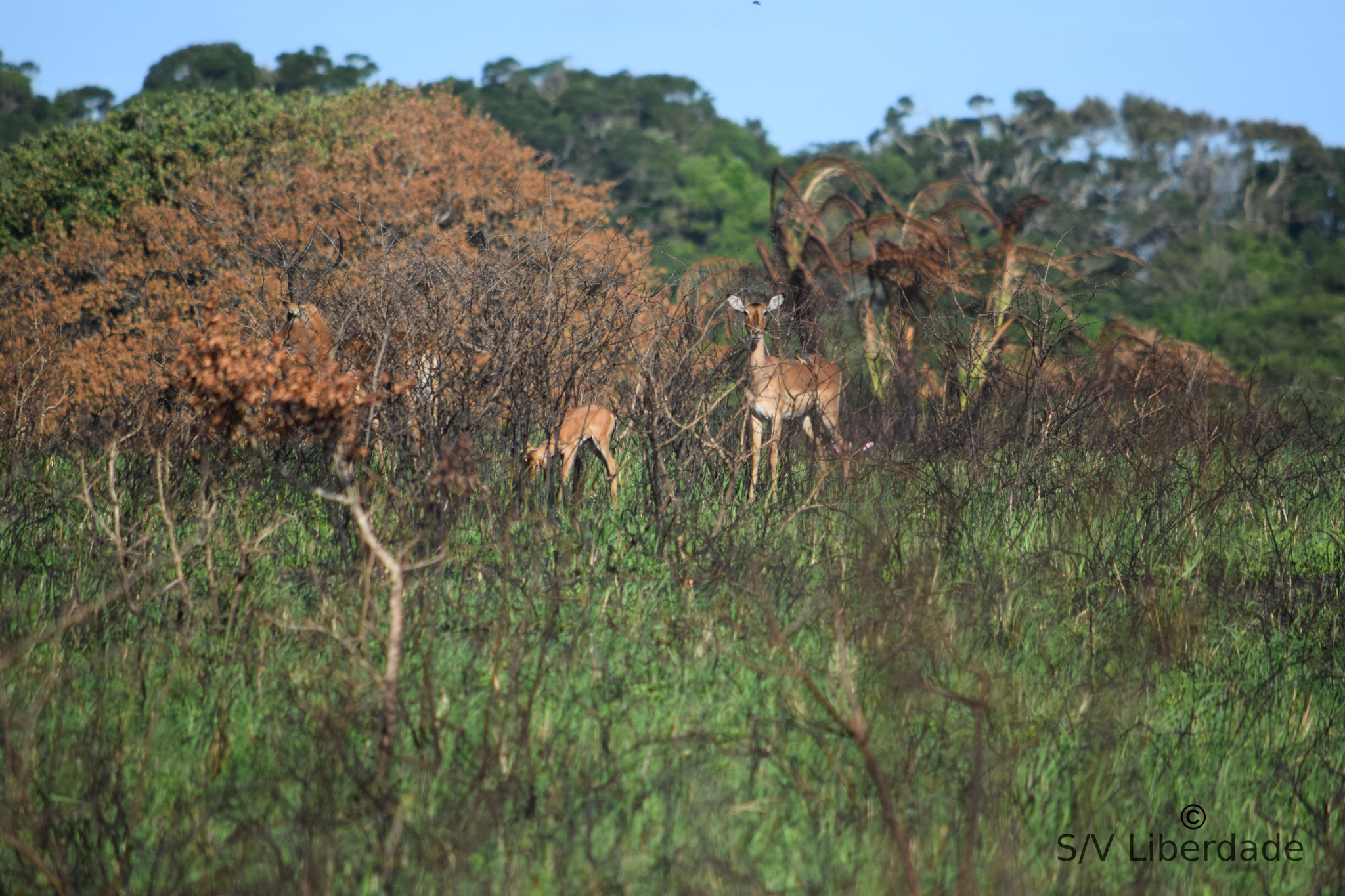 Elle sont nombreuses par içi. Nous avons pu observer une foule d'animaux pendant 3 jours avec une chance incroyable dixit notre guide local. (bonne étoile enfin). Camp de base 4 étoiles sur l'estuaire de St Lucia, découvert par les portugais en 1575 lors d'un naufrage !