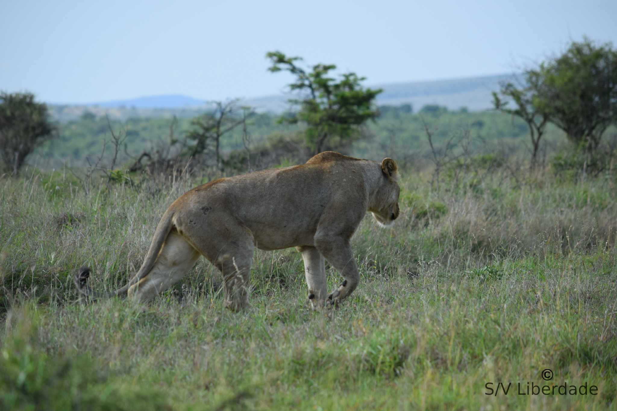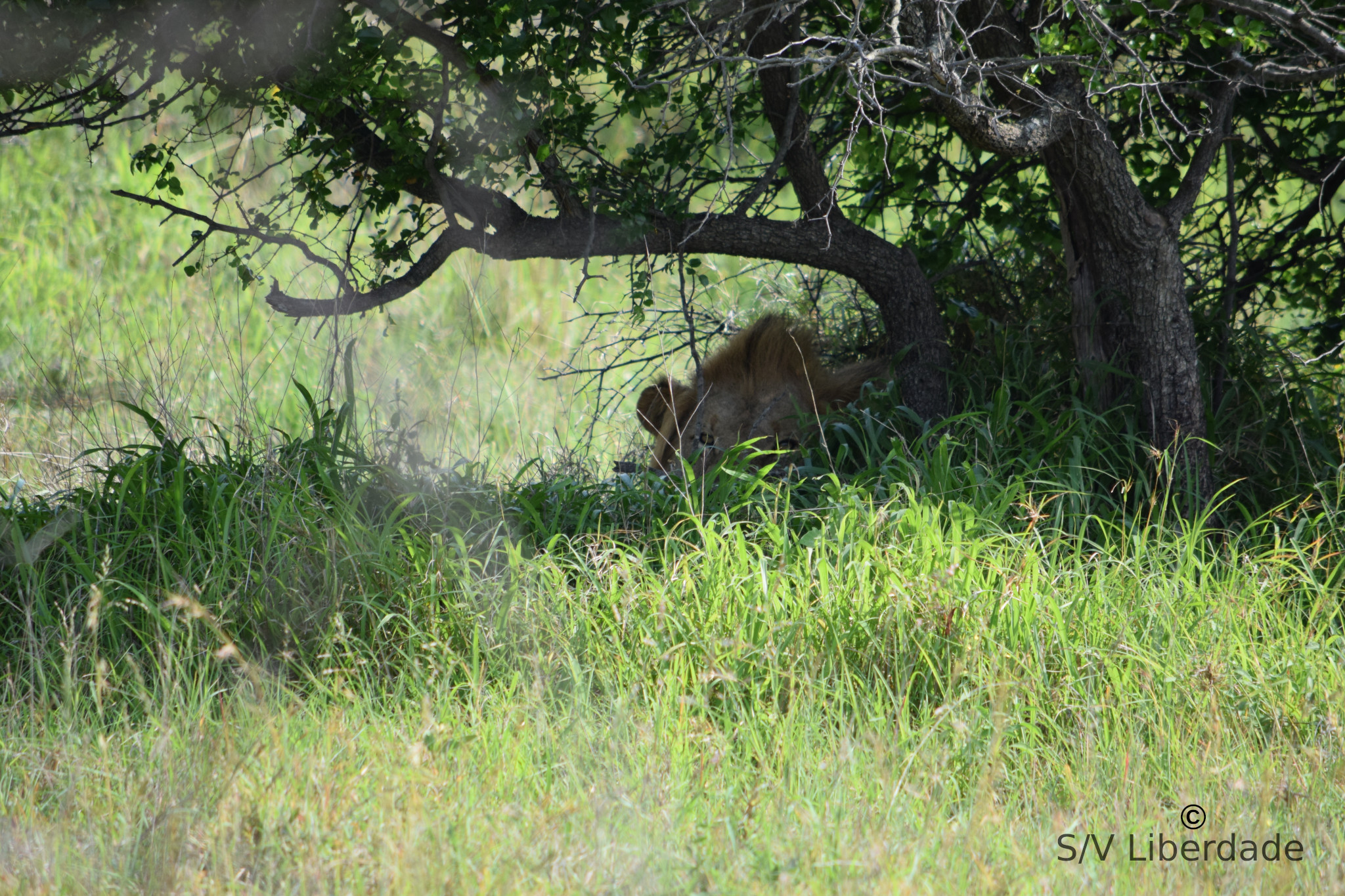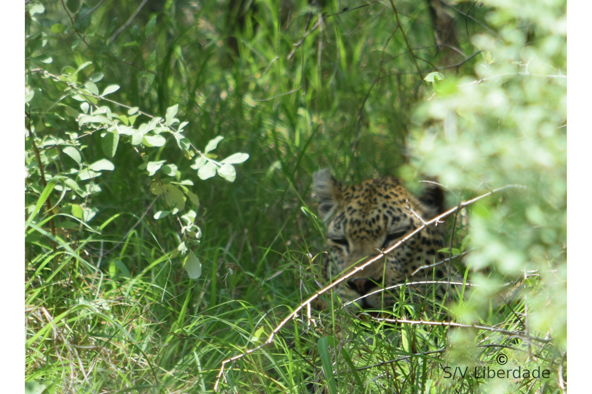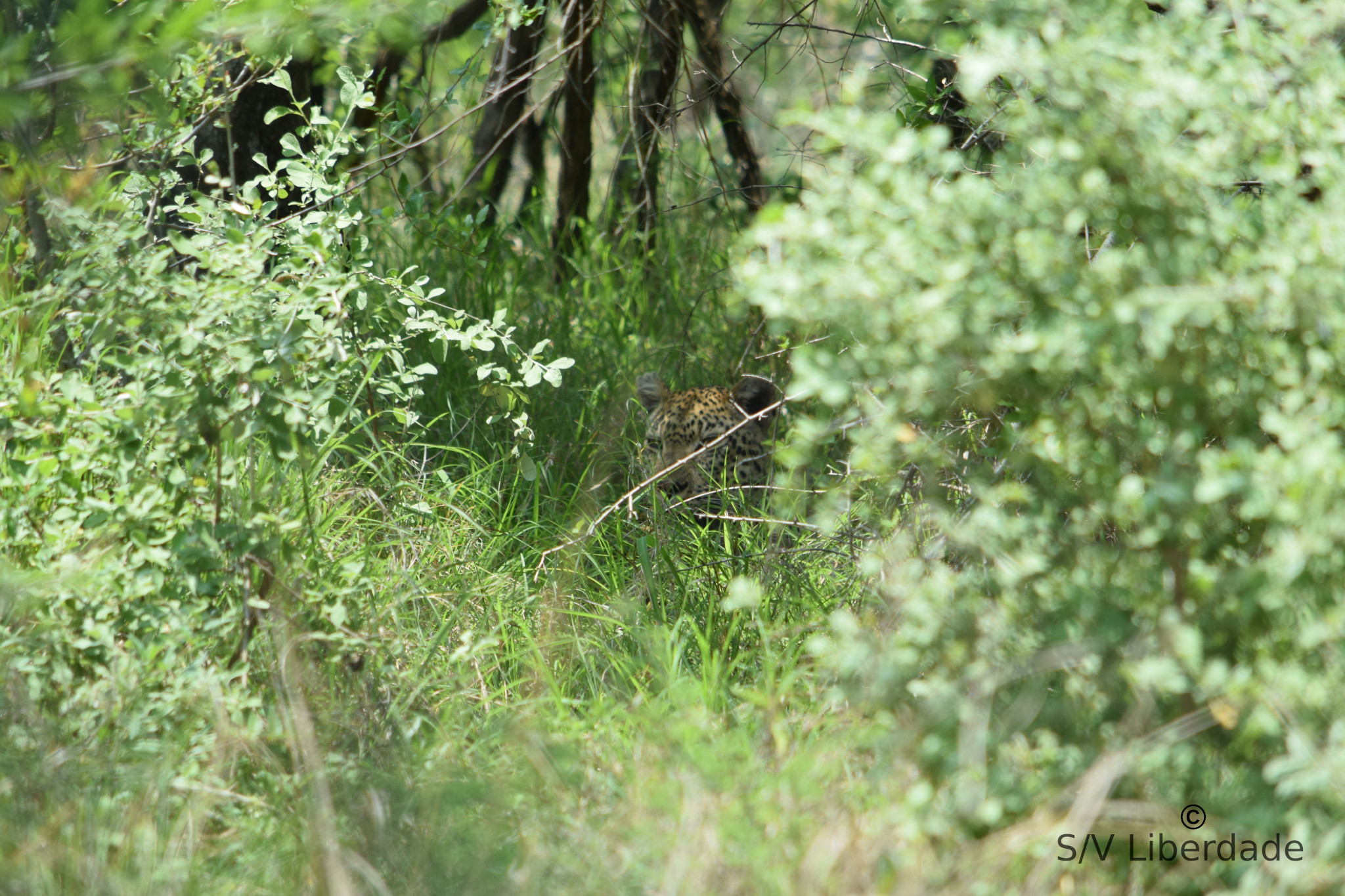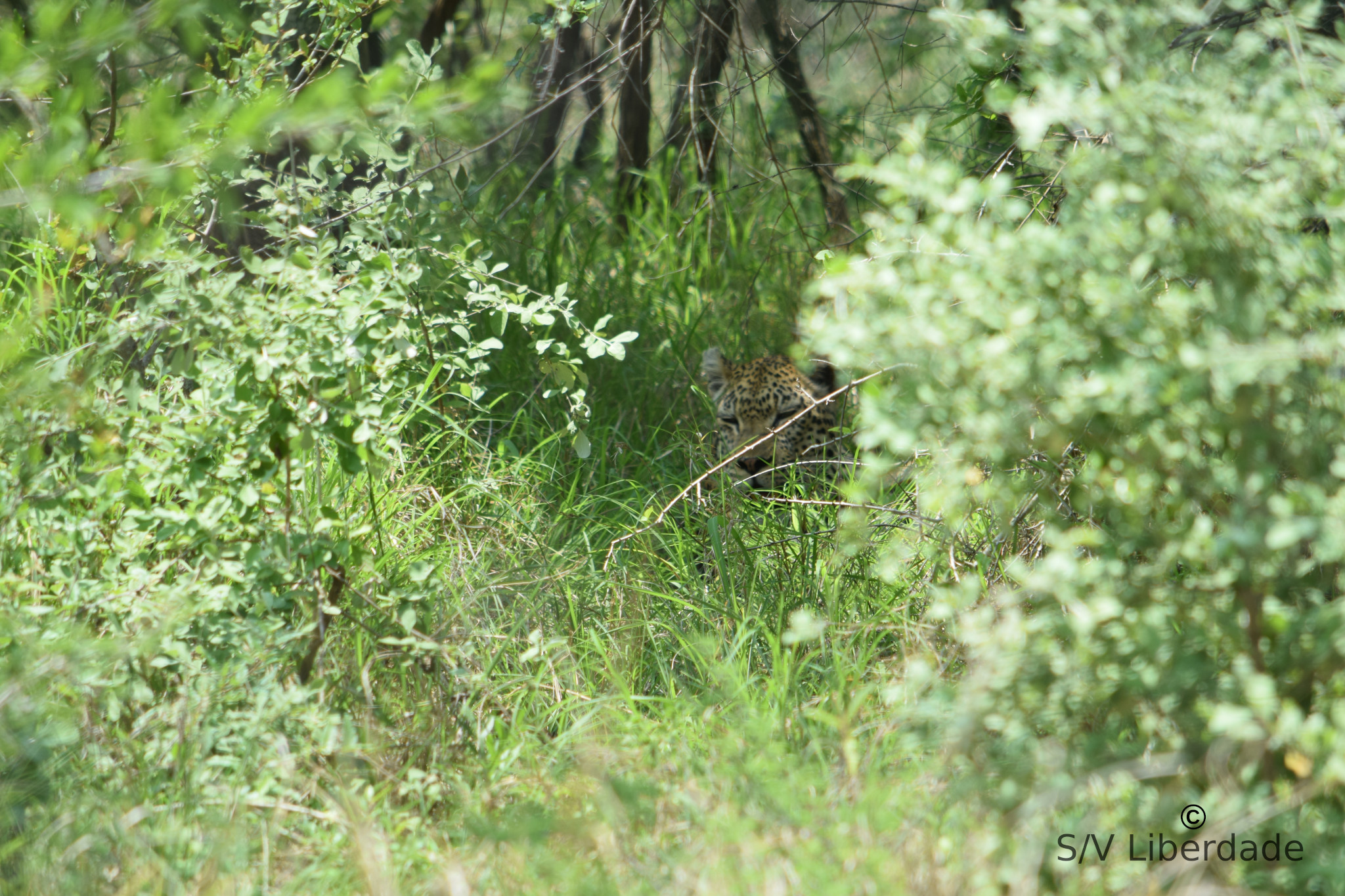 Et nous avons eu la chance extrême de voir (apercevoir, deviner...)  un léopard, chose exceptionnelle en plein jour, après une longue traque.