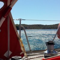 Entre 20 et 40 nœuds de vent en permanence au mouillage, heureusement nos jeunes ado sont là pour remonter les 30 à 40 m de chaîne à la main , ils se battent presque :-). Et oui Liberdade n'a pas de guindeau "électrique".