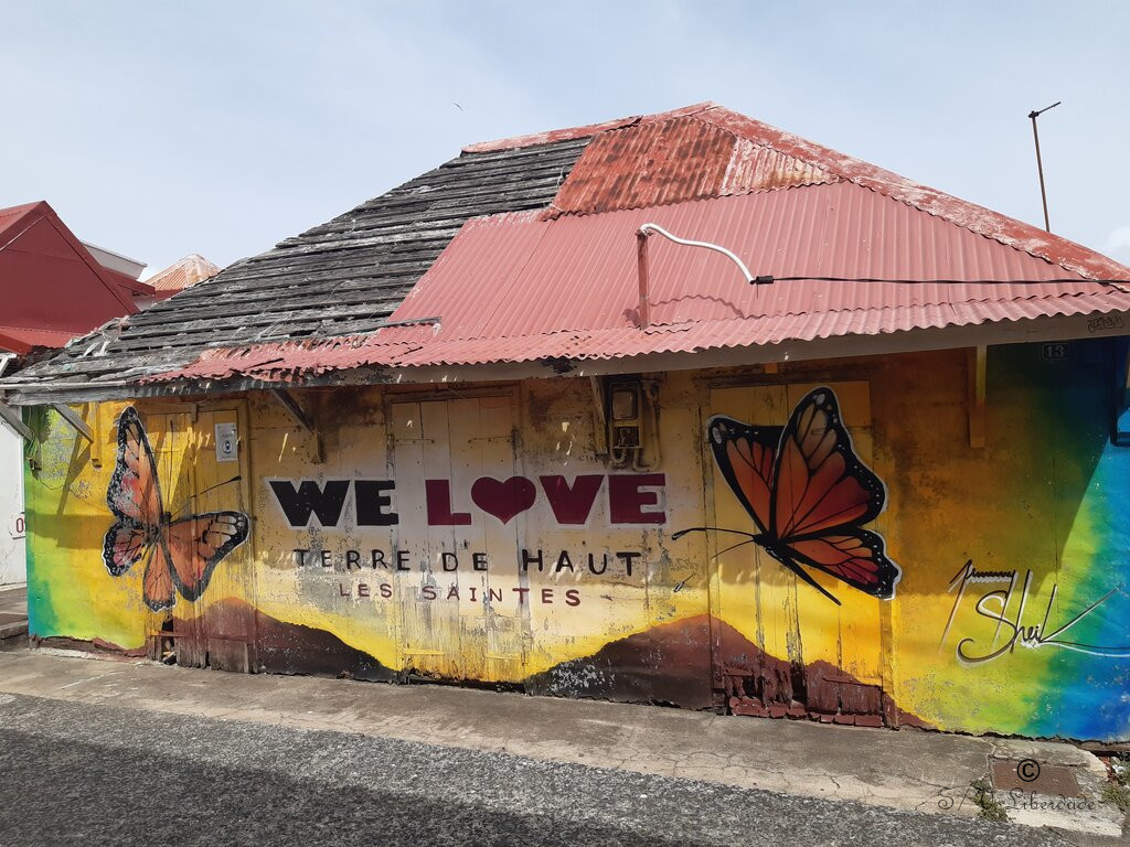 On reconnaîtra Les Saintes parmi elles, mais le coin le plus riche fût Port-Louis sur la cote SE de la baie "Grand Cul-de-sac marin". Un coup de coeur d'ailleurs ce petit village authentique, sans le tourisme et son urbanisation. Une intruse c'est néanmoins glissée dans ces diapo, elle vient de Fort de France ! Devinez laquelle cool .  Un indice : "Martinique laborieuse". Effectivement aux Saintes on papillonnne un peu plus ;-)