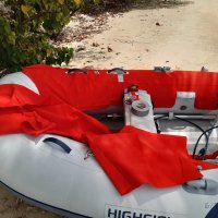 On fera quand même le tour de l'île et un peu de couture pour habiller notre annexe (contre les UV).