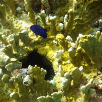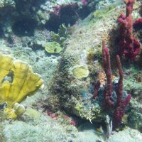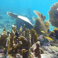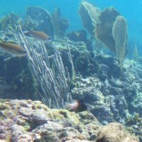 Nous avons pu aller plonger sur "La réserve Cousteau" qui n'est autre que l'îlet Pigeon et n'a rien a voir avec le commandant. (Mais pigeon c'est moins vendeurcool ) . Je ne m'étendrai pas sur la gestion de ce "sanctuaire" et du business associé... Nous avons joué de malchance et le jour de notre passage, une forte houle troublait fortement l'eau. Les photos étaient impossible. Il y avait pourtant de superbes spécimens...