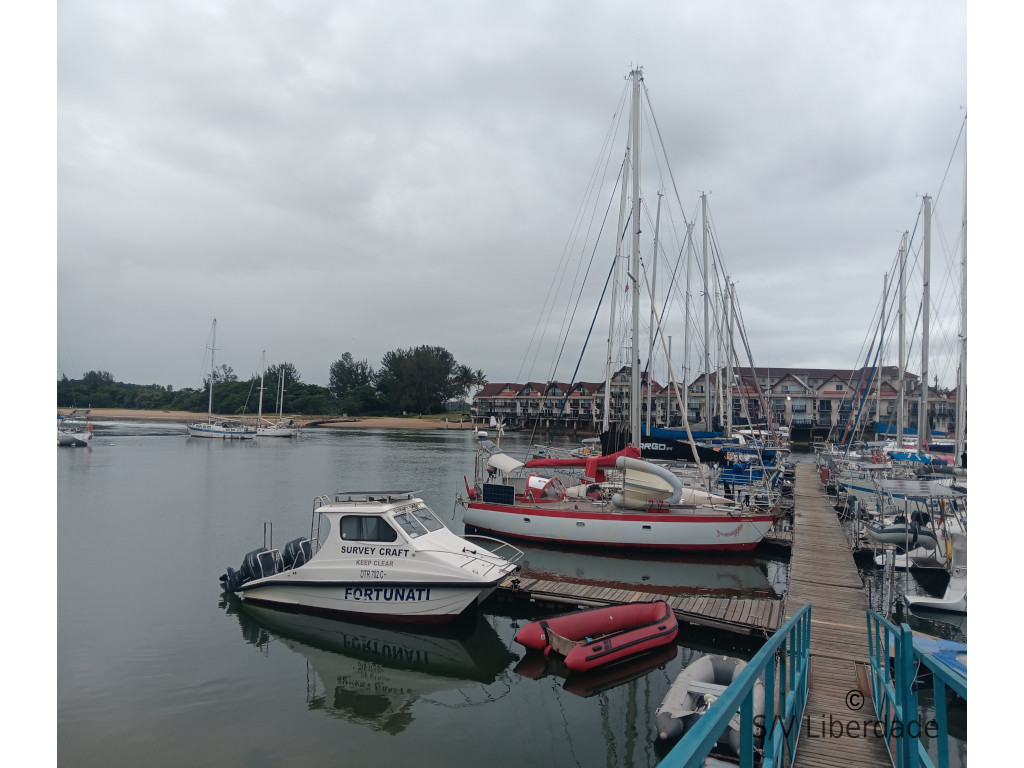 Des formalités réglées en 5 minutes pour 0€ sur ou sous la table, visa de 3 mois offert, 3 jours de quai gratuits avec eau et électricité, et un petit bar resto juste devant pour bien accueillir les visiteurs. Y a des pays qui savent recevoir. Demain nous filons sur la mythique marina locale : "Zululand Yacht Club" pour un break de quelques semaines le temps que l'été austral s'installe vraiment et nous permette de descendre plus sud tranquillement. Déjà ce matin 19° au réveil !! Après 6 ans à poil sur l'équateur avec des températures mini supérieures à 28°,le choc est rude. Couette et chaussettes sont de retour.