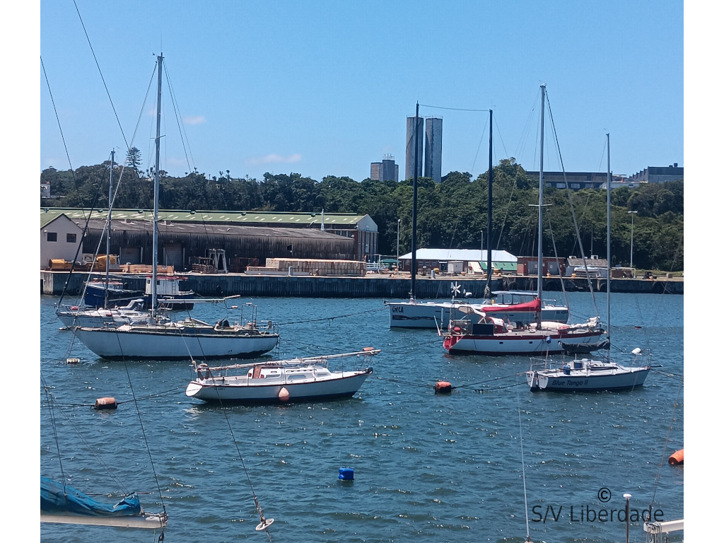 Notre brave Liberdade se repose enfin au ponton du Yacht Club pour panser ses plaies, comme nous.