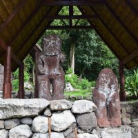 A l'extreme NE de l'île se trouve Puama'u et ses vallées. Nous irons par la mer mais le temps n'était pas au rdv! Heureusement que nous avons visité par la route avant. Il y a l'un des plus beaux site archéologique des Marquises et de la Polynésie française dit on : Meae Lipona. Son charme réside dans sa localisation, près d’un torrent et au pied du seul piton (Toea) de la vallée, l’organisation de ses structures et surtout des plus grandes et des plus belles statues du Territoire. Etudié et restauré à l’occasion du Festival des Arts des Marquises (Matavaa) de 1991, il est le site le plus réputé des Marquises.