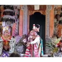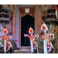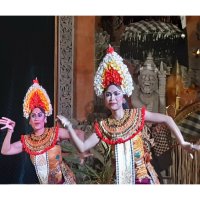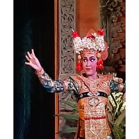 Comme Venise, on ne passe pas en Indonésie sans aller au théâtre. Voici quelques photos en diaporama des personnages en costumes juste incroyables. Hélas notre connaissance de l'histoire (et de la langue) est insuffisante pour comprendre ce qui se raconte. Les expressions corporelles sont juste impressionnantes. La dance "Legong" interprétée par 3 jolies balinaises tente de nous raconter les déboires entre "Barong" ,un genre de lion, seigneur de la forêt, chef des forces du bien, et Rangda, je vous le donne en mille, une reine des démons affublée d'une langue gigantesque...Tiens donc ;-) Cette danse entre Randga et Barong symbolise néanmoins la lutte éternelle du bien et du mal.
