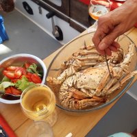 Cette charmante bestiole fait d'ailleurs l'objet d'expérimentations culinaires régulières par Véro, pour notre plus grand plaisir visuel et calorique ! Car contrairement à ce que nous avons connu jusqu'à présent, la législation ici fixe le poids mini par pièce à 3 pounds (1,5kg), et le prix est bien inférieur à celui du steak !